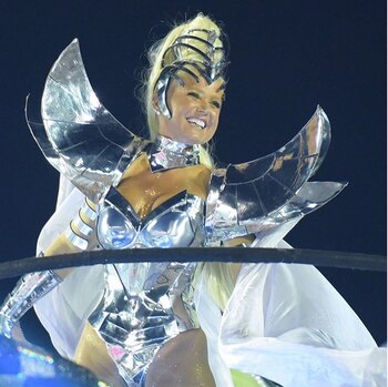 La superestrella brasileña y ex prometida de Pelé y Ayrton Senna, se presentó en el Sambódromo, la semana pasada, en lo alto de un carro alegórico de la agrupación Grande Río, el cual fue ignorado por la transmisión de Globo.