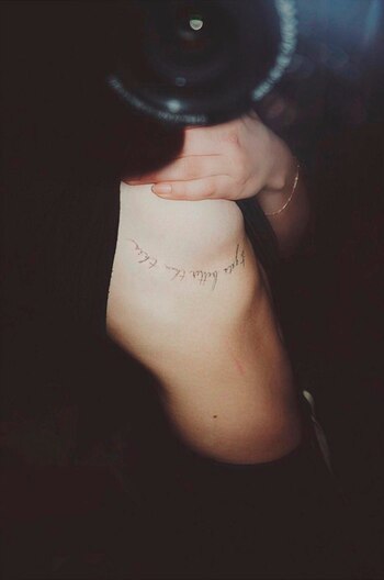 La actriz tiene otros tatuajes en su cuerpo, por los menos 7. La ex novia de Brooklyn Beckham tiene la firma de su abuela, Janette Duke, en la espalda.