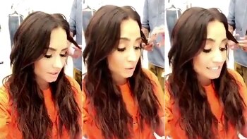 Con clara dificultad para pronunciar el español, la estrella pop aprovechó el tiempo muerto que tenía mientras la peinaban y maquillaban, para improvisar su versión del hit mundial de Luis Fonsi y Daddy Yankee.