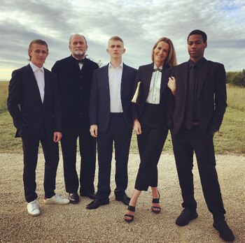 Así, la corbata de lazo o moño fue dejada a un lado por varios hombres, mientras que Hicks, quien ocupa el puesto 678 en la línea sucesora al trono británico, se arriesgó con un atrevido bodypainting.