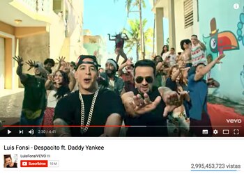 Según informó YouTube por medio de un comunicado, "Despacito" alcanzó hoy 2.993.786.682 reproducciones en esta plataforma digital y se encuentra muy cerca de ser el primer vídeo que supera los 3.000 millones de visitas.