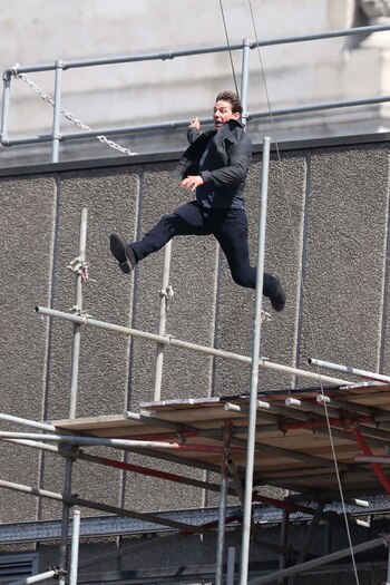 En el primer video del incidente- compartido por el sitio de espectáculos TMZ- se puede ver a Cruise saltar de un andamio de un edificio a otro y no alcanzarlo.