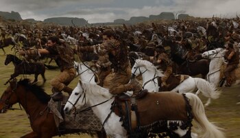 Como si se tratara de una nueva versión de "Los siete samuráis" de Kurosawa, Snow se rodeó de un equipo de elite, en el que destacaban Jorah Mormont (Iain Glen) y Tormund Giantsbane (Kristofer Hivju), para adentrarse en las gélidas tierras donde les esperaban hasta osos zombis.