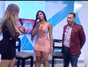 Una sensual modelo dominicana causó una fuerte polémica al sujetar, en plan de broma, el pene de un presentador en medio de un programa de horario familiar.