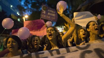 "¡Ni una menos, vivas nos queremos!" fue la consigna que centenares de brasileñas gritaron este martes al unísono en las calles del centro de Río de Janeiro durante una nueva manifestación contra el machismo y en defensa de los derechos de las mujeres en América Latina.