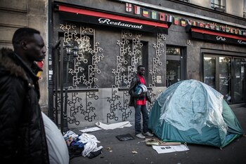 Junto a las concurridas avenidas y un canal en el noreste de París, los inmigrantes –en su mayoría africanos que dicen ser originarios de Sudán– levantaron cientos de tiendas de campaña con cartón en el suelo para intentar aislarse del frío.