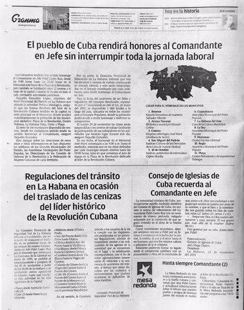 Este lunes, día que comenzaron los actos fúnebres, los periódicos estatales Granma, Trabajadores y Juventud Rebelde volvieron a rendir tributo al líder de la Revolución cubana.