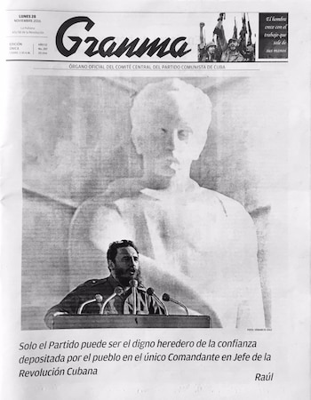 "Solo el Partido puede ser el digno heredero de la confianza depositada por el pueblo en el único Comandante en Jefe de la Revolución Cubana". Con esa leyenda abrió su portada de hoy el diario Granma, acompañada de una imagen de Fidel brindando un discurso.