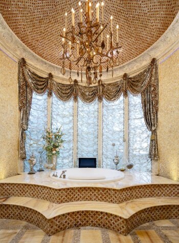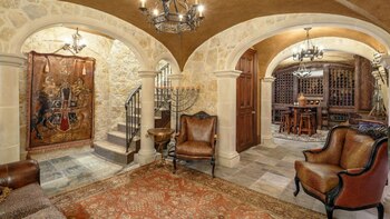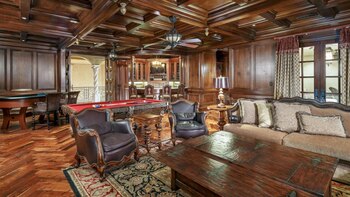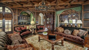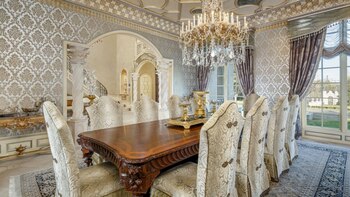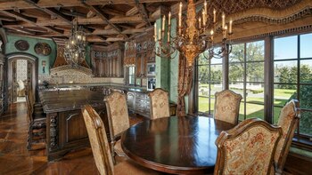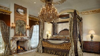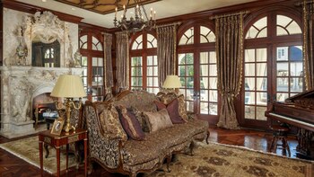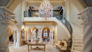 La casa incluye un foyer de dos pisos, sala de billar, bar, bodega, gimnasio, dos líneas de bowling, campo de baloncesto y de tenis, sala de cine, disco, piscinas, sauna, spa y, quizás, lo más espectacular de todo: su propio parque acuático con múltiples toboganes y cascadas.