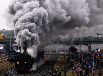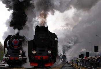 La ciudad polaca de Wolsztyn fue testigo este sábado de un peculiar desfile de locomotoras de vapor de diferentes orígenes, que recorrieron las calles ante la mirada de curiosos y aficionados.