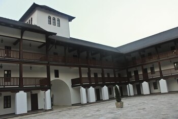 El barrio luce como una aldea medieval, como una ciudadela amurallada o como un castillo de piedra con torres y amplios portales. Hay un cine y bares, un centro cultural, muchas tiendas. Todo se ve prolijamente falso, una artificial escenografía muy bien plantada, un set de filmación, y sorprendentemente limpio comparado con el resto de Visegrad. En los numerosos bares, locales y visitantes por igual beben cerveza despreocupadamente, mientras de fondo se escucha el susurro del río Drina. Hace poco más de dos décadas por allí bajaron flotando cadáveres, muchos de los cuales nunca fueron encontrados o reconocidos.
