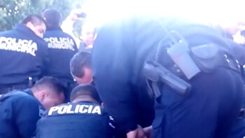 "Ocho de nuestros compañeros fueron sometidos y llevados a la fuerza adentro del Palacio Municipal, se los llevaron en una camioneta a la comandancia", expresó en un mensaje de audio.