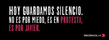 "En México nos están matando. No al silencio", colocó un grupo de alrededor de 30 periodistas y fotógrafos sobre el piso del Ángel de la Independencia en la capital mexicana, donde para esta noche se espera también una velada a las afueras del Ministerio del Interior para leer partes de los libros escritos por Valdez.