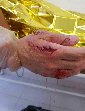 Según informa El Mundo, cerca de las 11:30, hora local, el hombre salió del mar con la "mano sangrando" y fue atendido por un "mordisco importante", según fuente de la organización DYA. Más tarde, fue trasladado al hospital local para que le dieran puntos de sutura.