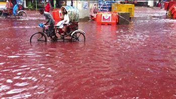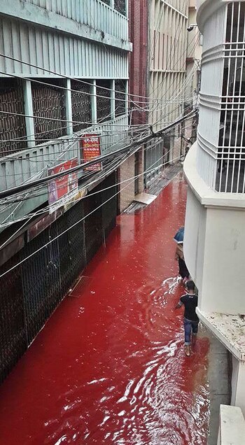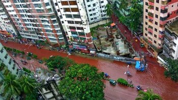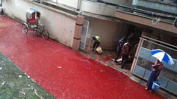 La lluvia hizo el resto, al arrastrar los restos y formar auténticos ríos de sangre en las calles de Dacca. Las fotografías de ese escenario entre grotesco y terrorífico se viralizaron en las redes sociales.