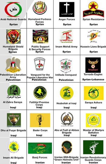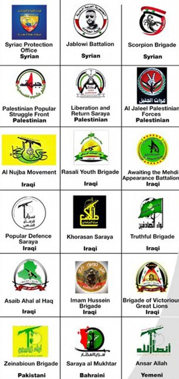 La coalición pro Assad cuenta con milicias de Palestina, Líbano, Irak, Afganistán, Pakistán, Bahrein y Yemen.