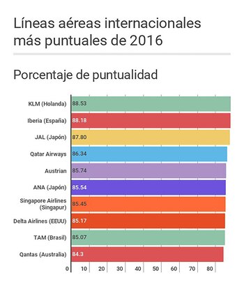 La aerolínea holandesa KLM resultó la más puntual del año 2016, compartiendo el podio con la española Iberia y la japonesa JAL.