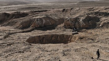 Es una fosa perdida en el desierto iraquí al sur de Mosul. El grupo Estado Islámico la convirtió en un "lugar de muerte", relatan los habitantes apenas liberados del yugo de los yihadistas. La leyenda local cuenta que la caída de un meteorito provocó en la tierra esta grieta conocida como Khasfa (grieta en árabe).