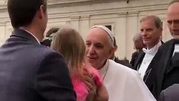 Estella Westrick tiene tres años y durante su primera mañana en Roma ya demostró lo terrible que puede resultar si no está bajo la supervisión de sus padres. Es que durante la audiencia general en el Vaticano, su padrino, Mountain Butorac, quiso que conociera al papa Francisco en persona y que pudiera recibir una bendición.