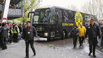 El ataque ocurrió cerca de las 19:15, hora local (17:15 GMT), cuando tres artefactos explotaron al paso del autobús del Borussia Dortmund, que se dirigía al estadio para el partido de ida de cuartos de final de la Liga de Campeones frente al Mónaco, que fue aplazado para esta tarde.