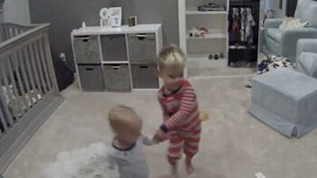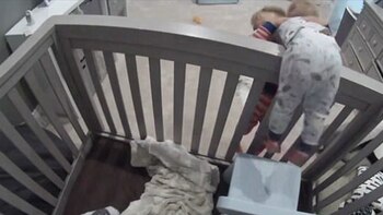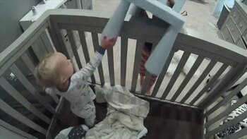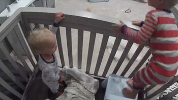 El atrevido niño ayudó a su hermano menor a escapar de la cuna. Todo quedó registrado por la cámara que sus padres pusieron en la habitación… pero que evidentemente no miran muy seguido.