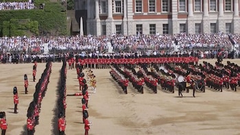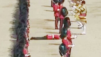 Un guardia se desmayó durante la ceremonia anual "Trooping the Colour" (Marchando el color) que celebra el cumpleaños de la Reina Isabel II del Reino Unido.