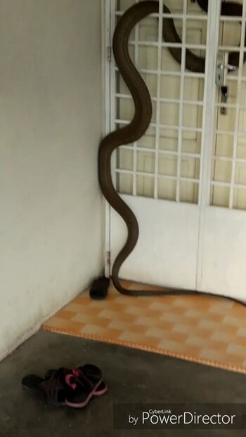 Un hombre grabó el pasado 18 de junio un video del momento exacto en que una cobra real invadió su vivienda en Batu Pahat, Malasia. Derrick Yi Fan estaba en su propiedad cuando escuchó ruidos fuera de ella. Al salir observó que una gigantesca serpiente estaba entre sus pertenencias, mientras intentaba atraparla sin éxito.