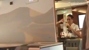 Según difundió La Vanguardia, en la grabación se aprecia a la perfección cómo una de las aeromozas de Emirates devuelve a una botella de champagne el contenido de una copa. Está lejos del improvisado camarógrafo, pero la cortina está corrida, así que todo quedó registrado.