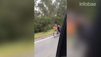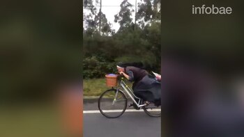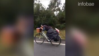 Dos españoles que circulaban en una camioneta por la misma carretera descubrieron a la mujer y, ante semejante imagen, no solo la grabaron, sino que la bautizaron "Sor Bicicleta".