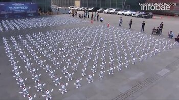 Ingenieros de la ciudad china Cantón juntaron 1.069 robots el pasado 17 de agosto y los programaron para que bailen al mismo tiempo.
