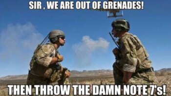Mientras tanto, los memes explotaron en las redes sociales. Las situaciones en las cuales soldados arrojan su artefacto son varias. "¡Fuego!", puede leerse en otra de las ilustraciones, mientras un marine lanza su Note 7.
