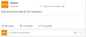 Tampoco el tamaño aumenta si al post, aunque tenga menos de 35 caracteres, se le agregan fotos, vídeos o links.