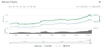 Cuando se concretó la división, el 1 de agosto, la criptomoneda cotizaba estable, por debajo de los USD 2.800. Una vez disipadas las dudas, volvió a su tendencia alcista y ha mostrado un rendimiento superior al 30% durante agosto. Así, llegó a alcanzar una valor de USD 4.225, aunque luego bajó a USD 4.045.