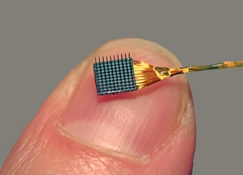 Se trata de la interfaz cerebro-computadora (BCI) que por medio de cien electrodos que penetran en el cerebro registra la actividad eléctrica de las neuronas y la traducen en información o acciones.