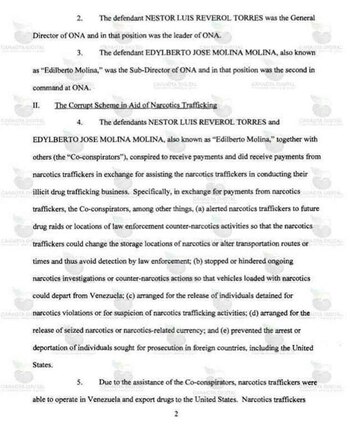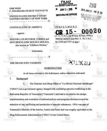 El documento que reposa en los archivos de la Corte de Nueva York señala cada una de las actividades criminales que Reverol y Molina habrían realizado durante su paso por la ONA.