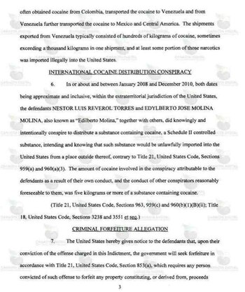 En su descargo, los fiscales norteamericanos señalan que los presuntos delitos fueron cometidos entre enero de 2008 y diciembre de 2010 mientras Reverol y Molina se desempeñaban como Director y Subdirector de la Oficina Nacional Antidrogas de Venezuela (ONA), respectivamente.