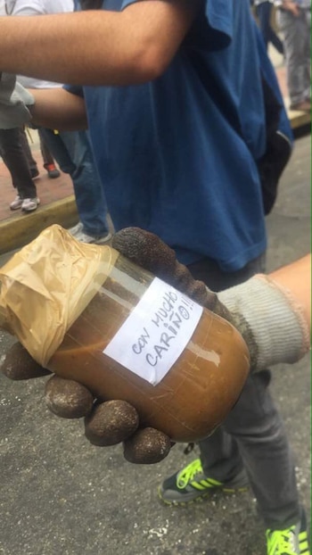Frascos llenos de excrementos han sido arrojados contra los efectivos de seguridad en los últimos días durante los habituales choques en manifestaciones opositoras, que dejaron 50 muertos y centenares de heridos y detenidos en 40 días.