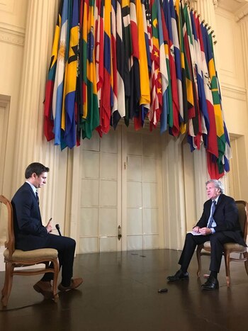 "El régimen madurista ha dejado al pueblo cada vez más lejos de sus derechos. Lo más importante hoy es que se detenga la Asamblea Nacional Constituyente", comenzó su diálogo Almagro. Y agregó: "Hoy la comunidad internacional tiene que seguir denunciando la violación de los derechos humanos".