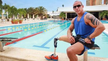 Nunca tuve miedo, lo logré por la determinación y ganas que tenía de llegar a la meta. Soy un hombre de retos y no me pongo límites, pero claro que sufrió la pierna. En la caminata la prótesis se me partió y llegué saltando a la meta en una sola pierna, incluso me caí y tuvieron que suturarme cuatro puntos. La satisfacción de llegar a esa meta fue increíble, ahora, la cuestión con el nado en aguas abiertas si fue bastante difícil. Se me acalambró la pierna que me queda y me las vi bastante feas, ya que eso es en altamar. No me rendí, prefería que me sacaran ahogado o muerto antes que renunciar a la competencia.