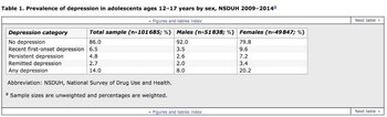 Los investigadores emplearon datos recopilados por la Encuesta Nacional Norteamericana Sobre Consumo de Drogas y Salud (NSDUH, por sus siglas en inglés), que utiliza una muestra representativa de la población estadounidense. Se realizó la encuesta tanto en persona como a través de métodos asistidos por ordenador. El estudio, titulado "Diferencias de sexo en la aparición temprana de la depresión en una muestra epidemiológica de adolescentes", repasó las respuestas a preguntas sobre depresión, suicidio, rendimiento académico, disfunción relacionada con la depresión (con respecto a tareas, deberes del colegio, relaciones familiares, etc.) y problemas conductuales (como robar, pelearse o llevar un arma).