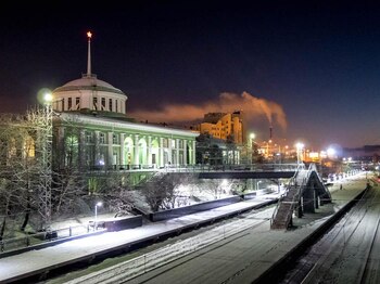 En el centro de la ciudad hay una gran plaza en la que se encuentran sus dos hoteles principales, el espléndido Le Meridien y el Azimut. Como no podíamos permitirnos ninguno de los dos, optamos por alojarnos en el Tri Zaysta Mini-Hotel, una especie de B&B ubicado en un edificio de baja altura y aspecto industrial, muy cerca de la estación de tren.