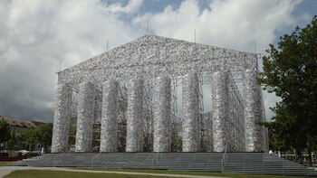 Kassel, Alemania. Enviada especial. Eins, zwei, drei, vier… El rubiecito de pelo largo y remera azul no sabe de arte o sí. Debe tener unos tres años y mientras señala con su dedo índice y le sonríe al papá, cuenta hasta donde le dan los números que ya conoce los libros que funcionan a la manera de ladrillos en el imponente Partenón creado por Marta Minujín que, por alrededor de unos cien días, seguirá deslumbrando a los visitantes de la Friedrichsplatz. "Esto es Documenta", me dice casi en un susurro Marlene, una peruana que vive en Kassel hace 28 años y que ya tiene unas cuantas ediciones de la muestra encima, por lo que sabe perfectamente que estos chicos crecen cerca del arte contemporáneo, naturalizando obras complejísimas por las que en otros lugares muchas veces hay que seguir dando explicaciones, como si la belleza pudiera ser explicada.