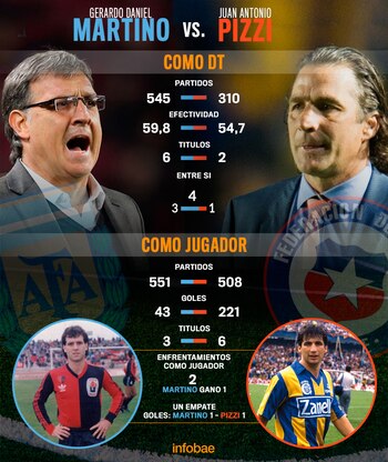 Como técnicos, Martino derrotó a Pizzi por la séptima fecha del Torneo Final 2013, cuando Newell's venció a San Lorenzo con gol de Maximiliano Rodríguez. En tanto, el Valencia –dirigido por el ex delantero auriazul– venció al Barcelona del Tata en el 2014 por 3 a 2 en el Camp Nou.