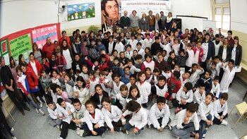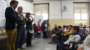 Además de mantener diálogo con las autoridades del colegio y los niños al lado de los dirigentes millonarios, el histórico arquero de la Selección (campeón del mundo en 1978) formalizó la donación de 340 litros de pintura que le servirán a la institución para modernizar su infraestructura.