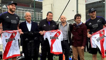 Un día antes de que River reciba a Vélez por el campeonato de Primera División (mañana desde las 20) y que los All Blacks visiten a Los Pumas (desde las 19.10) en el José Amalfitani, los protagonistas de ambos equipos se cruzaron y midieron sus habilidades en el césped del Monumental.