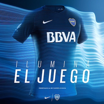 A través de una campaña en las redes sociales, el club "Xeneize" dio a conocer la camiseta que tiene un "diseño moderno con tonos azules y finas rayas horizontales". El azul marino del fondo se combina con los tonos más celestes de las líneas.