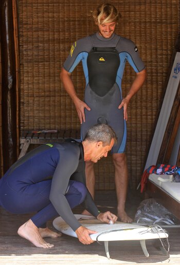 Se encontraron en el balneario Honu Beach-Quiksilver y al instante sintieron mucha onda. Primero fue el coach quien quiso saber cosas de surf, en especial cómo harían para meterse en un mar que estaba grande y desordenado por el creciente viento sur. Valiente, Orsanic se mantuvo sin opinar hasta que se cambiaron y encararon las olas. Más tarde, tras salir del agua, admitiría que "sin Santi, en este mar no me hubiese metido. En el agua soy más conservador".
