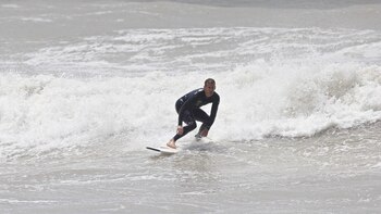 Daniel sorprendió a todos. Lejos de ser un novato, mostró temple, oficio y gran condición física. Se paró en cada ola que remó y si bien en algunas se cayó por lo anárquico que estaba el mar, también es cierto que en un par llegó hasta la costa. "Hoy era un día difícil para posicionarse por el viento y yo trate de ayudarlo, pero lo que hizo no es nada fácil. Surfea re bien, tiene una capacidad deslumbrante", contó Santi, rider estrella de Quiksilver Argentina que vive en Bombinhas (Brasil) pero asegura ser "más argentino que el dulce de leche".