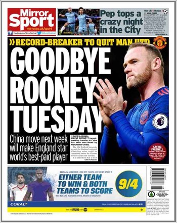 En Inglaterra no juegan al misterio ni buscan excusarse con frases escritas en potencial sino que confirman que Wayne Rooney dejará el Manchester United el martes de la semana próxima luego de aceptar una oferta de la Súper Liga China que lo convertiría en el jugador mejor pago del mundo, desplazando de ese sitio de privilegio a Carlos Tevez.
