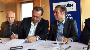 Por la tarde el ministro Gustavo Santos, el gobernador Omar Gutiérrez y el Secretario General del Consejo Federal de Inversiones (CFI), Juan José Ciácera, firmaron un convenio tripartito, mediante el cual se pusieron a disposición 15 millones de pesos para la reactivación productiva de la región.